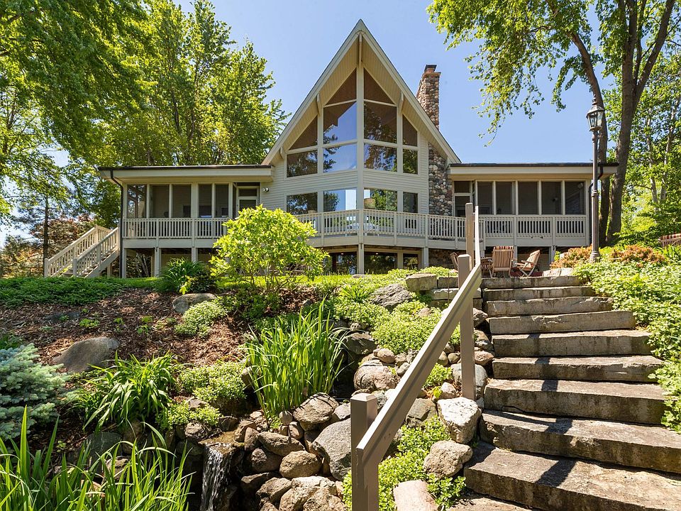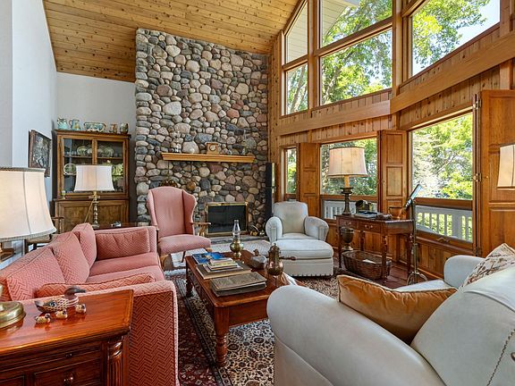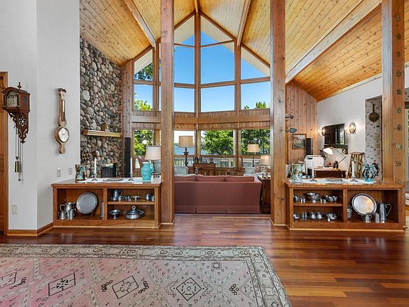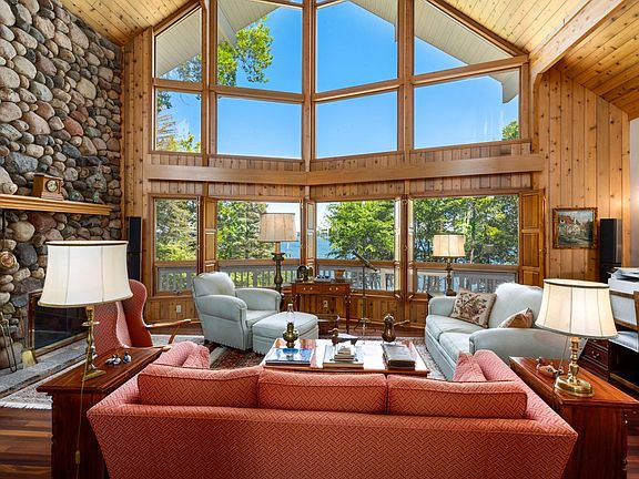 Stunning custom built Lindal post and beam home on Clearwater Lake. Spectacular, best describes this 4 bedroom, 3 bath home. The open and spacious foyer is inviting, giving panoramic views as you enter! Brazilian Cherrywood floors and tongue and groove cathedral ceilings are truly magnificent! Views of the lake from this open kitchen with a large center island that opens to a trex deck extending the entire length of the home. Entertain your guests in the beautiful formal dining room overlooking the living room with a massive wood burning fieldstone fireplace. The main level offers a large and elegant owners suite accessing a terrarium. The lower level is designed for entertaining featuring post and beam cedar ceilings, wonderful lake views, wood burning fireplace with stone surround and mantel. Custom sauna and shower in the exercise room. Beautifully manicured grounds and charming guest cottage at the waters edge. This is truly a "one of a kind" gorgeous lake home!