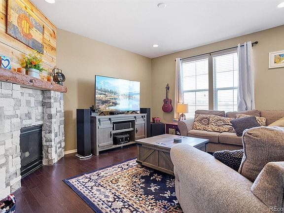 Welcome home!!! Wonderful turn key home in Fonterra village. Upon entering the home your greeted by a large cozy sitting/living room with an abundance of natural light. Continue to the family room featuring a cozy gas fireplace for those cool colorado evenings. The Fireplace is one of a kind with stone and custom beetle kill wood. The family room opens to the kitchen featuring stainless steel appliances, panty, island with seating, as well as plenty of counter top and cabinet space. The thoughtful design of this home has all bedrooms, Loft and laundry on the upper level. The large master suite has its own private master bath. The unfinished basement is awaiting your finishing touches. Other features of this home are Central A/C, front and back sprinklers, Vivint security system, doorbell cam, surround sound, Wood floors, water softener, and a 2 car garage. Washer and dryer are included. Escape to the backyard which is perfect for entertaining with a large concrete patio and backing to Buckley ranch open space with miles of trails and creeks. There are also garden beds and drip system. Nestled in a family friendly neighborhood walking distance to school, trails, Parks and a short drive to buffalo run golf course, Bison Ridge Rec and the Rocky Mountain arsenal national wildlife refuge. Near dining and shopping. Easy commute to DIA, Denver, I-76, HWY 2 and E-470.