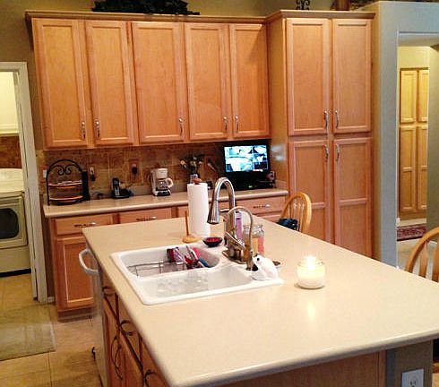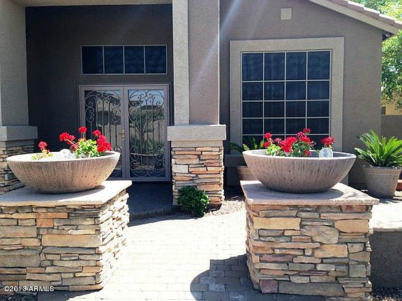SHOWS LIKE A MODEL HOME! Well cared for one story home in Augusta Ranch Golf Community. Extensive Travertine and Stone backsplash and accents. Maple cabinets throughout and Corion counters in kitchen topsSun screens on all windows, double security doors at front, extended 3 car garage, home energy computer, new 50 gal. Water heater 2/2011 w/6 year warranty, Sears water softener 6/2010, ADT security system - monitored, In backyard a nice 1000 sq. Ft. Patio with a water fountain and a BBQ island. Desert front and grass in the back with rock at perimeter. Inside, open floor plan with loads of upgrades: crown molding in formal living room, dining room, kitchen and family room. Freshly painted inside, and a stacked stone wall in family room with new carpet.