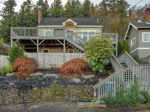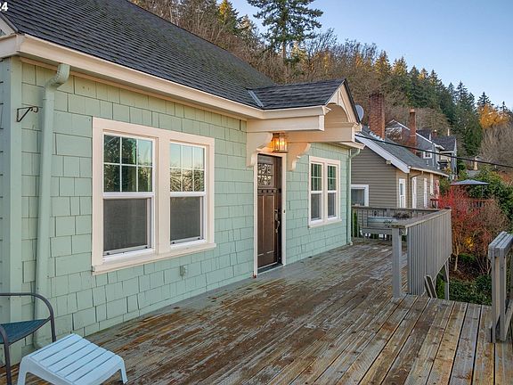 Take in breathtaking views of Mt. Hood and Mt. Rainier from this charming bungalow. Step inside to discover original oak flooring and a cozy gas fireplace insert in the living room, which flows seamlessly into the dining area with river views.The kitchen features a gas range and solid wood cabinets, blending functionality with timeless style. The main floor includes a bedroom and full bath, while the upper level offers a spacious primary bedroom with walk-in closets and an additional bedroom.The lower level boasts a versatile family room, a bonus room, a half bath, and a laundry area with its own private entry. The fenced backyard is perfect for gardening with raised beds, and the home provides easy access to Forest Park trails. All this, just 15 minutes from downtown!