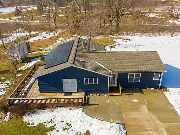 MULTIPLE OFFERS: HIGHEST BEST BY NOON 3/7/21. Must see country beauty sitting on 4.35 acres near all sports Sand Lake. This meticulously maintained 5 bedroom 2 full bath home has been completely updated, including quartz/granite countertops in kitchens, complete with a separate in-law suite that features 2 bedrooms, a full bath, with additional eat in kitchen. Split layout offers privacy, separate access to living areas and independent heating/cooling unit. Home has solar panels offering a break on utilities, with the added ability to assume the remaining payments or have it paid by sellers in the asking price. An extra large 40x60 pole barn with 14 foot ceilings and concrete floor offers endless potential for its use. A large deck overlooks the expansive yard boasting a mix of mature trees and open space for outdoor fun. There is an additional outbuilding owners used as a chicken coop that will stay on site. 1 year home warranty.