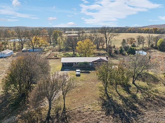 4 bedroom, 3 bath, 3 living areas, 2 fireplaces, formal dining room, walk out basement. 10 acres w/ 2 ponds, 30 x 50 horse barn w/3 stalls, feed room, tack room, steel corral, steel round pen , horse stanchion, barn, barb wire fencing. This property could be a hobby farm or AirBnB located approximately 1 mile from Illinois River where you can enjoy fishing or floating the river. Gore, OK is the trout capital of Oklahoma! Selling As-Is. Home will not pass FHA,VA,CONVENTIONAL or RURAL DEVELOPMENT FINANCING.