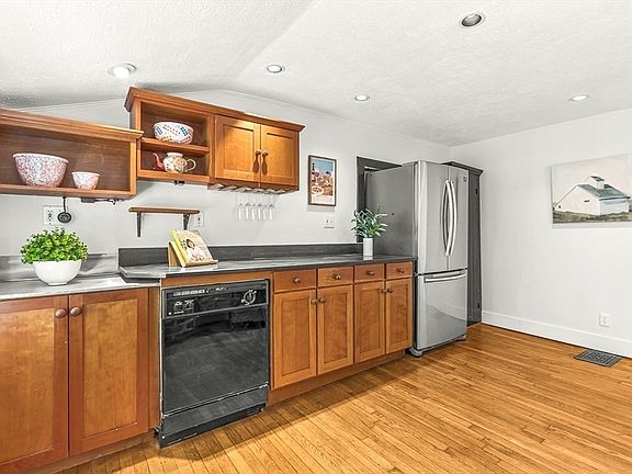 Built by village Blacksmith Benjamin Davenport in 1827, this freshly painted antique farmhouse offers comfort with a story. The 1st floor features a generous living room with wide-board pine floors, convenient primary bedroom, & large full bath w/ whirlpool tub. The kitchen has honed granite counters, cherry cabinets & opens to a dining room with skylit-vaulted ceilings. Sunny 2nd floor features guest room and office. The home has been thoughtfully preserved with a 2021 roof, modern electrical panel & oil tank. Enjoy central air throughout. Out-front is a holly hedge & flowering hydrangeas while out back is a private garden retreat with brick patio, ivy & pink flowering cherry blossom trees. There's also parking for 2 cars & custom oversized storage shed. Located in the historic heart of Upper Falls, it offers access to Route 9, Eliot green line T-stop, Mass Pike, parks & restaurants! With its mixed-use zoning, this property is perfect for residential living or a unique business.