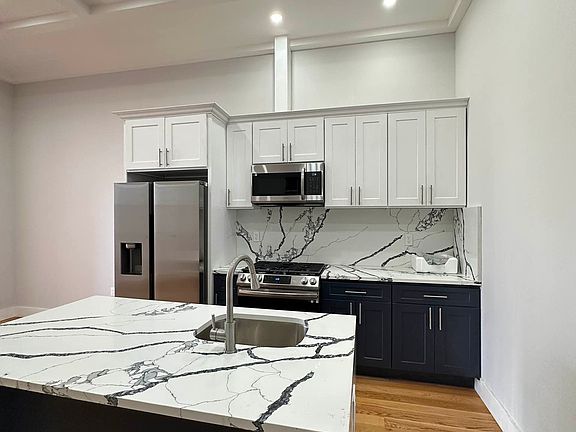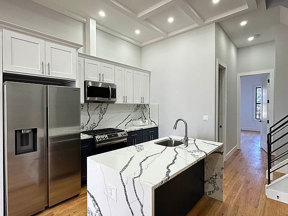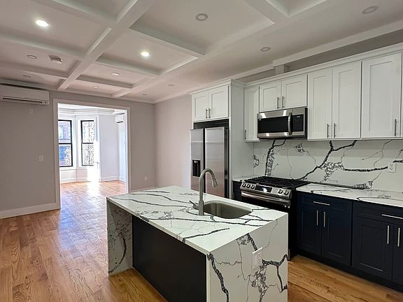 BRAND NEW LUXURY 3 Bed/ 2 Full baths DUPLEX + PRIVATE TERRACE! PRIME Bushwick! Unit features Designer European marble kitchen with island, IN-UNIT WASHER/DRYER, stainless steel appliances, DISHWASHER , Direct access to PRIVATE Backyard! lots of closet space, Huge bedrooms, State of the art finishes, Central split heating and cooling, Open air light views, deep marble bathroom bathtubs, SMART home features , hardwood oak flooring, great living dining space, and much more !!. Bushwick is a neighborhood known for its vibrant arts and cultural scene, eclectic mix of architecture, and diverse community. This once-industrial neighborhood has undergone a transformation in recent years, with a thriving community of artists, musicians, and young professionals calling it home. Bushwick is home to a vibrant street art scene, with colorful murals and street art adorning the walls of buildings throughout the neighborhood. The area also boasts a variety of dining options ranging from trendy gastropubs to authentic ethnic cuisine. Bushwick is well-connected to the rest of New York City big apple, with several subway lines offering easy access to other parts of the city. Whether you're looking for a trendy nightlife scene, vibrant arts and cultural events, or a tight-knit community, Bushwick has something to offer everyone. Come experience the unique energy and vitality of this dynamic Brooklyn neighborhood. Secure package drop off, security camera systems, and more! Only Steps away to the J, Z & M train , close to gorgeous parks! Guarantors or welcome ! Pet friendly ! Schedule now to view!