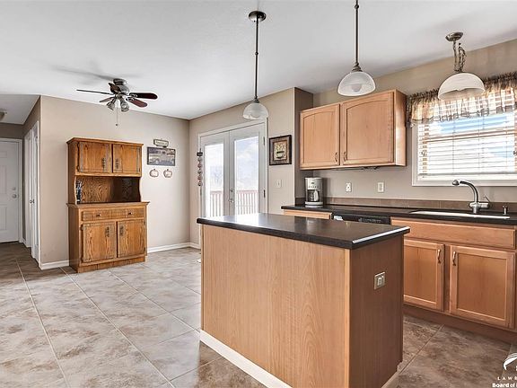 4 BEDROOM 2 STORY ON 5 ACRES JUST OUTSIDE OF LAWRENCE! Kitchen features tile flooring, pantry and breakfast room that walks out to HUGE deck overlooking amazing acreage. Formal dining room and living room with wood floors. Big family room. Master bedroom with walk in closet and private bath! Lower level includes 2nd family room, game area, full bathroom and 5th non-conforming bedroom/office. 36 x 42 shop with an additional 12 ft of overhang! Just minutes from Clinton Lake!
