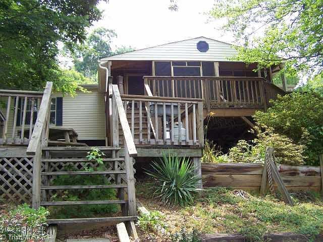 Wonderful waterfront main channel DWMH on High Rock Lake. New pier in process of being installed, also permanent brick foundation almost completed. Screen porch w/ decking to pier offers excellents view of lake. Furnishings remain w/ acceptable offer.