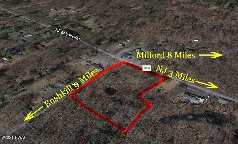 3+ Acre corner lot zoned commercial at busy intersection of Silver Lake Road and Milford Road in Delaware Township. Excellent road frontage on both sides. Busy computer intersection currently features a bar and deli. Centrally located between Milford and Bushkill, PA and Layton, NJ.