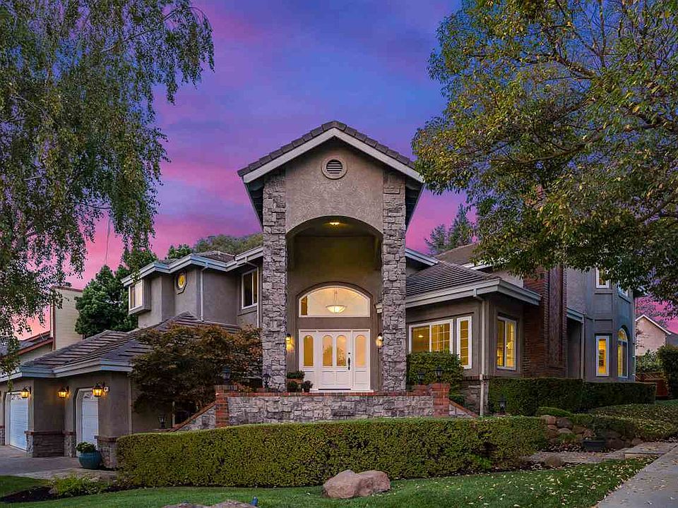Gorgeous Vintage Heights custom home nestled in the hills of Pleasanton Stunning staircase and travertine entry. Open living room with a beautiful fireplace. Formal dinning dining with coffered ceiling and beautiful hardwood floors. Expansive family room with built in cabinets, brick fireplace, recessed lighting and wine bar. Gorgeous granite kitchen white cabinetry, double ovens, recessed lighting and a large center island with chef's prep sink and gas stove top. Breakfast nook overlooking the garden. Spacious master bedroom with romantic fireplace, raised ceiling and peaceful sitting area. Open loft with built in office. Guest room with adjacent full bath downstairs. Sunny laundry room with white cabinetry, wash basin and French door to the backyard. Private and serene backyard with patio and deck for entertaining. Great side access. Walk to school, parks and regional park trails. Minutes to historic downtown and Livermore wine country. Award winning schools.