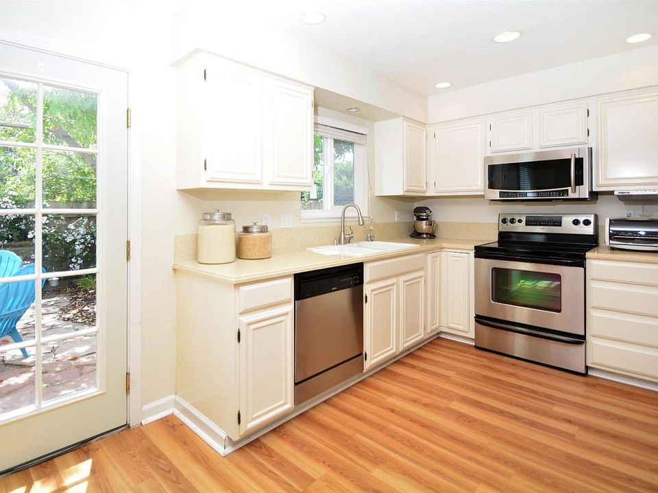 How sweet it is! You have to see inside to believe how nice this spacious 2 bedroom 1.5 bath unit is. No one above or below you and only one shared wall. A spacious master bedroom upstairs, recently remodeled eat-in kitchen with corian counter tops; fireplace, a private backyard w/ stone patio and a 2-car garage w/ laundry hook ups. Low HOA! This is a planned unit development and technically not a condo... this means easier lending requirements!