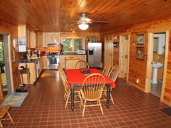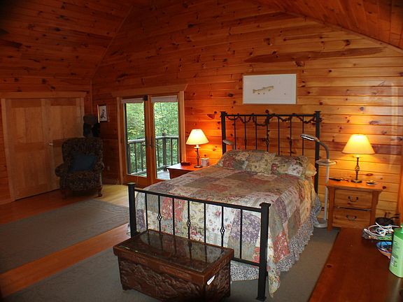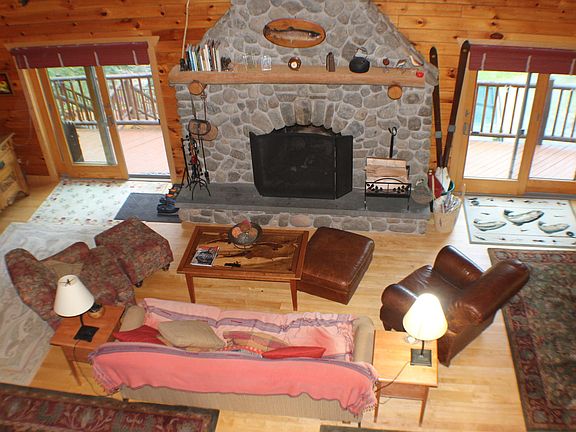 Beautiful, custom-designed 4-bedroom, 3-bath log home overlooking the West Branch of the Delaware River, with easy, private access to nearly a quarter mile of prime trout water. Open architecture with huge Great Room, vaulted ceiling and spectacular stone fireplace. Modern kitchen, stainless steel appliances, pantry and generous adjoining dining area. Hardwood and tiled floors throughout. Wrap-around outdoor deck leading to enclosed, year-round porch nestled in tree-tops. En suite master bedroom includes small office and private deck. AC provides comfort throughout when the temperatures rise. Two-car garage, all on 18 wooded acres.