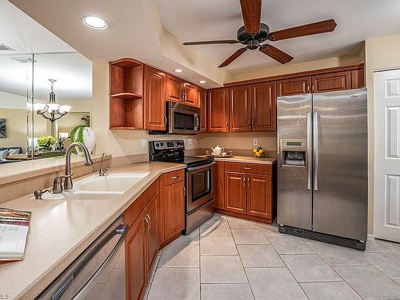 Welcome to an unbeatable value in the heart of Naples! This exceptional top-floor, end-unit condo is a rare find—offering three bedrooms, elevator access, and breathtaking views of the Quail Run Golf Course. The building has passed all required inspections and the Structural Integrity Reserve Study. The entire complex has been beautifully renovated, including a new elevator installed in 2024 and fresh exterior painting 2025—giving you peace of mind and a fresh, modern look for years to come. This partially furnished home features impact-resistant windows, an electric shutter on the lanai, vaulted ceilings, and newer stainless-steel appliances. The smart layout includes spacious walk-in closets, a split-bedroom design, and a primary suite with dual sinks. The den includes a closet and can easily serve as an additional guest bedroom. From the top floor, enjoy panoramic golf course views that are simply unmatched. When it’s time to unwind, the community clubhouse is just a short stroll away—featuring a sparkling pool, relaxing spa, and plenty of space to soak up the Florida sunshine. Whether you’re looking for a seasonal escape or a year-round residence, this home offers the perfect blend of comfort, convenience, and Naples charm. Located just minutes from Olde Naples, beautiful beaches, Waterside Shops, Mercato, Venetian Village, Lowdermilk Park, and Naples Bay. Everyday essentials like Costco, Target, Aldi, and Home Depot are all nearby—making this location as practical as it is desirable. Don’t miss this opportunity—top-floor, end-unit homes like this in such a prime Naples location are a rare gem!