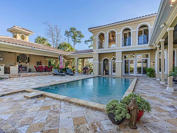 *Many more photos to see in virtual tours, including an evening photo shoot showcasing landscape lighting. *Exceptional outdoor living spaces complemented by an extraordinary home. This may very well be the home of your dreams and now you can make this beautiful mediterranean style home yours. Spacious open floor plan with high ceilings along with recessed lighting in the tray ceilings accentuates ambience. Exceptional unique details will be found throughout the home, such as extravagant crown molding, you will discover gold leaf inlay within alcoves and tray ceiling of the main bedroom as well as hand painted wall murals throughout. The owners’ suite is located on the first level along with two more bedrooms on the opposite side of the home, two more bedrooms upstairs, the larger can double as media room with a well equipped wet bar nearby. The upper level is also accompanied by an extensive covered terrace overlooking an opulent courtyard that includes a well dressed cabana retreat featuring solid surface bar / countertops, outdoor kitchen & fireplace for an ideal gathering place neighboring a refreshing saltwater swimming pool. As you venture indoors from the recently resurfaced saltwater swimming pool you are accommodated by a lavish shower room. “Heart of the home”, components of this kitchen are quite hospitable, stainless steel appliances displayed uniformly. You will enjoy the convenience of a gas range with a retractable downdraft range hood not to mention a raised oven as well as warming drawer below the work island plus an under-counter built-in commercial grade ice maker. Open air kitchen with character bragging solid surface granite counter tops in addition to a featured wine cabinet amid the pantry & salle-a-manger. Yet a third fireplace is available to comfort you while enjoying the screened porch adjoining the family room to the breezeway in turn connects to the poolside cabana via an attractively tile paved patio. Your vehicle will be greeted by a paver driveway before entering into one of three garages. Key features: This home is ICF (Insulated Concrete Forms) by Carrell Homes, in addition whole house speaker system, central vacuum system & 5 Zone HVAC. Moreover the property expresses maintained beauty of well manicured vegetation, the turf is comprised of Emerald Zoysia that forms a very lush lawn. The landscape is speckled with a variety of palms, crepe myrtles, shrubs & greenery that backs up to a community pond. Nestled within the serene embrace of the Grande Dunes Members Club, this community exudes an understated elegance, combining upscale living with a humble charm, 24 hour security w/ gates. Discover a haven of world-class amenities, private beachfront Grande Dunes Ocean Club beckons with its unassuming pools, dining spaces, and beach access. A thoughtfully planned community in the northern reaches of Myrtle Beach, South Carolina, Grande Dunes has earned its reputation not through ostentation, but through a commitment to refined living. Its luxurious homes seamlessly blend into the landscape, complementing the prime location along the Intracoastal Waterway. What Grande Dunes offers: For those passionate about tennis, Grande Dunes Tennis Club stands as a semi-private tennis haven featuring ten courts and a 5,000 square-foot facility. Grande Dunes graciously offers two championship golf courses—the Resort Club and the Members Club. Designed by renowned architects, these courses present a modest yet captivating backdrop for a challenging and scenic golfing experience. Adjacent to this haven lies the Grande Dunes Marina, a modest jewel along the Intracoastal Waterway. Here, boating enthusiasts find solace in the unpretentious boat slips and services, forming a hub for water-related activities with unassuming access to the vast expanse of the Atlantic Ocean. In Grande Dunes, the allure of an upscale lifestyle is wrapped in the humility of its surroundings, creating a truly harmonious living experienc