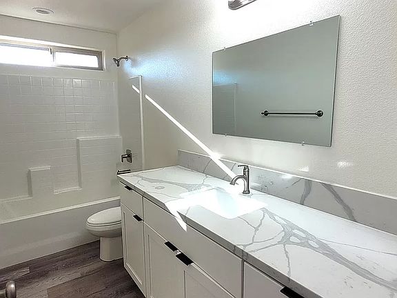 Room for Rent available New Construction located in the High Desert of California City Features 800 sq.ft., 1 Bedrooms & 1 Bath. Open Floor Plan boasts a grand entry into the main Living area with elegant open Kitchen with Quartz counter tops, Black Stainless Steel Appliances, White Cabinetry and Large Island. Features include, recessed lighting, custom floor, ceiling fans, mini blinds, indoor laundry area designed for stackable washer and dryer, and tankless hot water heater. Huge Master Suite with access to your rear yard and large closet. Master and Hall bath are complete with Quartz countertops and tile surround shower/tub. Wood fencing ,R.V. Alley access, Finished Garage. Home is Energy Efficient with a Tankless Water Heater.Home is beautifully located in the heart of California City!
