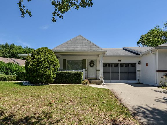 EXPANDED GRAND LAFAYETTE Model Villa sits atop a hill overlooking a park-like setting in much sought-after 55+ Gated Golf community of On Top of the World. Enjoy the views from the inviting front porch! This very nice villa features 2 bedrooms, 2 baths, Sunroom/Family Room, and Lanai, 1.5 car garage, newer roof 2010 and newer HVAC 2016, eat-in kitchen, step-thru tub in guest bath, step-in shower in master bath, 2 large solar tubes in kitchen, and Neutral colors throughout! The 1.5 car garage is perfect for a car and golf cart! The monthly HOA fee includes basic cable, irrigation, roof repair, exterior painting every seven years, exterior maintenance and insurance, landscaping, trash, 24/7 guarded gates and all the amenities that OTOW has to offer; three pools, two state of the art fitness centers, and much, much more! A golf cart community with access to three shopping centers. *** PROFESSIONAL PHOTOS WILL BE ADDED TUES., 3/2.