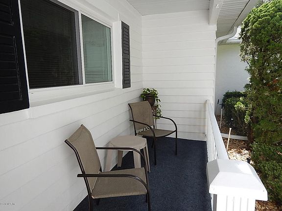 Super Sienna II located in Americana Village. Vaulted ceilings and a split floor plan features 2 bedrooms, 2 bathrooms, and a 1+ car garage (with screen), having plenty of room for a golf cart and car! Replacement windows, newer kitchen cabinets with white cabinetry; includes a Lazy-Susan and pull out shelves, and counter tops too! Newer vanities in bathrooms. Tiled flooring in the entry, kitchen and bathrooms, W/W carpet in living areas. Ceiling fans, double closets in large guest room. Master bedroom has walk-in closet, double vanity and large step-in shower in master bath. Enclosed Florida room with large slider windows and a large open outdoor concrete patio. Roof installed in 2010. Located in Ocala's premier, gated, active 55+ community, loaded with amenities.