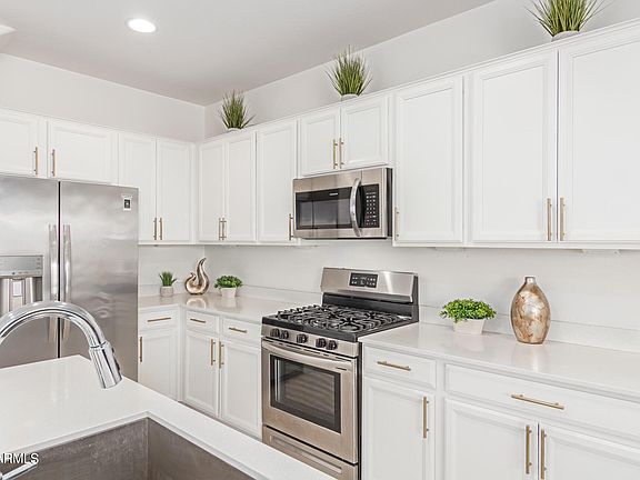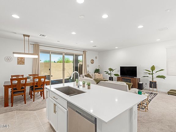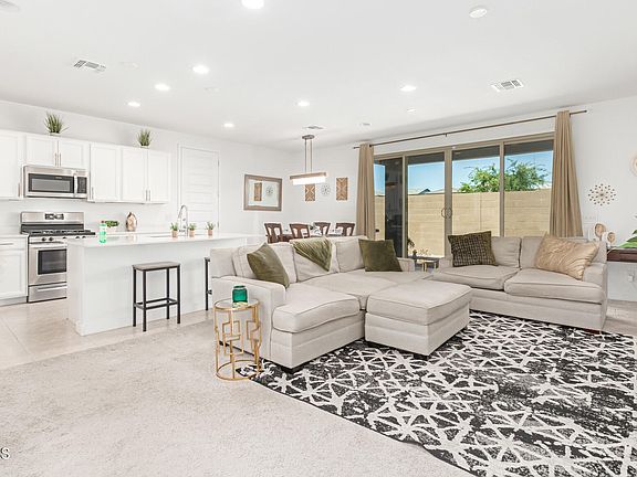 Stunning 4 Bed/3 Bath with a Bedroom & Bathroom WITH a Shower DOWNSTAIRS and a Community Pool in Cadence. Gorgeous gourmet kitchen with white cabinets, stainless steel appliances, GAS stove, quartz counters and pantry. Open floor plan with 4 panel slider. Wired for surround sound. Upgraded wood railing to upstairs. Huge owner's suite with large walk-in closet. Ensuite bath has dual vanities, shower, and private toilet. Low maintenance yard with covered patio, pavers and lush green artificial turf. AMAZING Community Amentities. Cadence residents enjoy the community pool with waterslide, spa that seats 40 people, tennis & bocce courts, indoor and outdoor fitness areas, garden, social rooms and more. Located on the edge of Mesa, Queen Creek & Gilbert so you get the perks of all three!