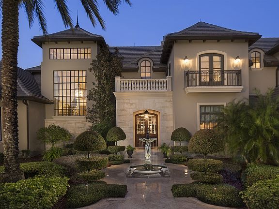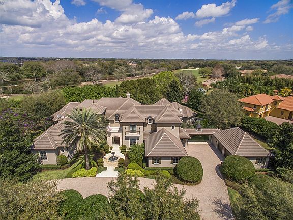Nestled on over an acre within the famed Isleworth Golf & Country Club, this sophisticated estate spans nearly 7,000 square feet offering exquisite European style in the heart of Florida's finest golf club community. Custom French doors reveal an architecturally stunning interior featuring beautiful finishes and panache at every turn. The formal living and dining rooms sit just beyond the grand foyer with a soaring double-height ceiling, where custom millwork, hardwood floors, crystal chandeliers and a beautiful stone fireplace draw the eye toward views of the sparkling swimming pool, spa and outdoor living spaces. Hardwood floors lead to the estate's main gathering area which encompasses the family room featuring a custom fireplace and exposed wood beams as well as the gourmet kitchen, where a fabulous oversized island, beautiful cabinetry, professional appliances and plenty of seating create a gracious space for entertaining family and friends. A luxurious retreat within the home, the owner's suite offers direct access to a private lanai as well as a spacious bath with a walk-in shower, soaking tub and dual vanities. In addition to the four generously sized en-suite guest bedrooms, the estate boasts a home office with custom built-in displays and an expansive 19th Hole-style game room on the upper level which showcases a custom bar and lovely balcony facing the 16th Green. Outside, the manicured grounds are simply stunning and feature a well-appointed lanai and summer kitchen overlooking the custom swimming pool and spa surrounded by plenty of space for soaking up the warm Florida sunlight all year round.