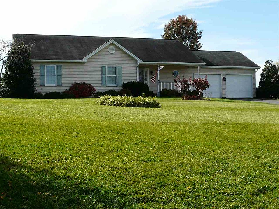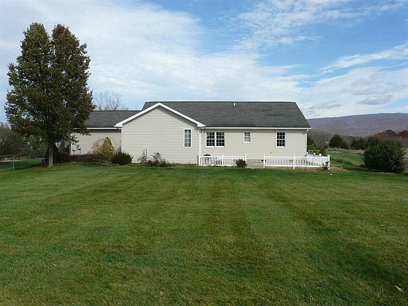 One Story located at end of road WITH FARMLAND ON TWO SIDES Mountains look close enough to touch (metaphor) Floor plan simple and convenient, Nice sized rooms Level fenced in rear yard with shed (overhead door and concrete floor) plus roofed side shed, Rear patio. Street light and Fire hydrant at driveway owner/agent