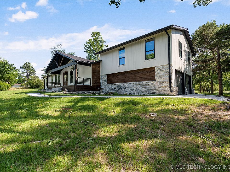 Step into this beautifully reimagined farmhouse where timeless character blends seamlessly with high-end modern living. Just reduced in price and with a recent appraisal in hand, this is an incredible opportunity you won’t want to miss. Situated on a picturesque 2.5 acre lot with a pond and large shop, this stunning home has been completely transformed from the ground up; approximately 75% of the house is new construction. No detail was overlooked, from the brand new roof and all-new electrical and plumbing systems to the thoughtfully designed addition that expands the living space with style and function. Inside, you'll find designer finishes throughout. The open-concept kitchen is a true showstopper, featuring premium appliances, quartz countertops, and an oversized island perfect for gathering, white oak floors throughout, spacious bedrooms and spa-inspired bathrooms offer comfort and elegance, while large windows fill the home with natural light and peaceful views. This turnkey property offers the best of both worlds, modern amenities wrapped in classic farmhouse warmth, all set on 2.5 serene acres just minutes from Owasso. Whether you're dreaming of a quiet retreat or a stylish space to entertain, this one-of-a-kind home delivers. The adjoining 2.368 acres to the west is also potentially available for sale.
