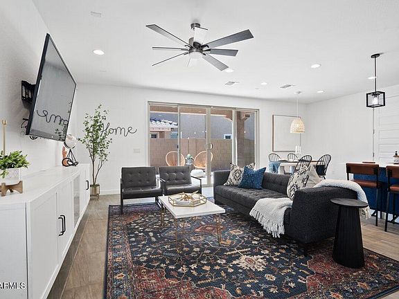 Experience modern living in the coveted East Mesa community. This 2-year-old home offers the ideal blend of contemporary design and convenience such as the low-maintenance landscaping and the added benefits of solar panels, tankless water heater and water softener. Monthly budgeting for this home is a breeze! HOA includes front yard maintenance and the solar panels provide a huge savings per year on electric bills.