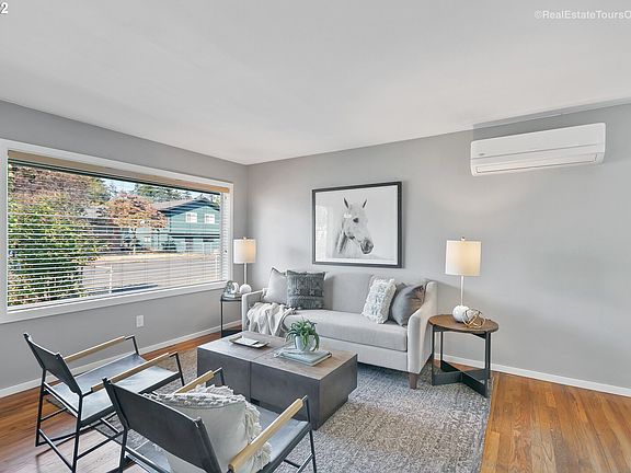 Upon entering this charming home, you are welcomed with a lovely picture window filling the home with natural light. Featuring 3 beds, 1 bath & a dining room that flows seamlessly into the updated kitchen for easy living. Enjoy real hardwood floors and the comfort of the energy efficient mini-split for heating & cooling. The patio & spacious yard are perfect for entertaining & the raised beds are ready for your garden. All with easy access to parks, PDX airport, 205 & public transit! [Home Energy Score = 6. HES Report at https://rpt.greenbuildingregistry.com/hes/OR10205539]