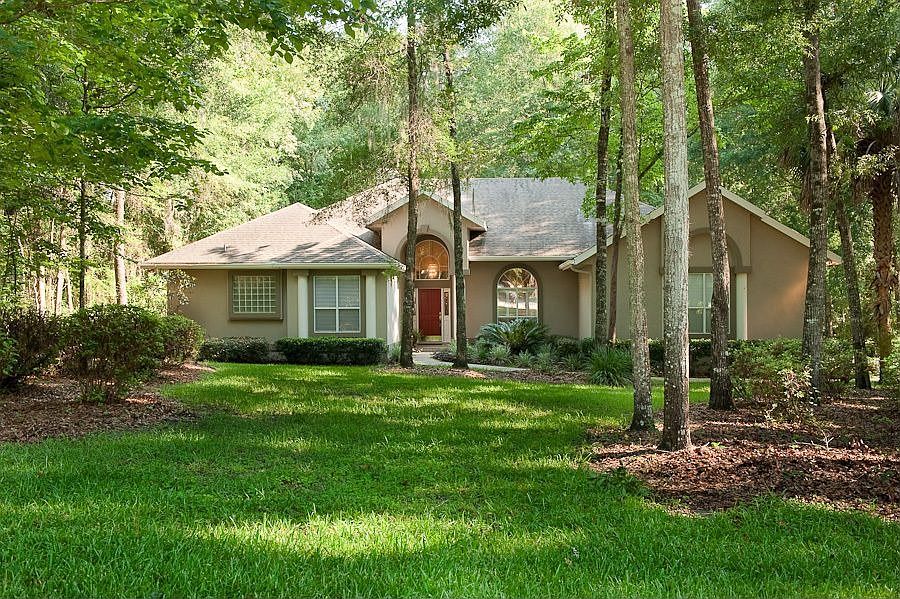 Former Parade Home , This great Four bedroom home on a large wooded lot ( .74 Acre ) with a great party deck for entertaining and beautiful pond with water fall. The large master suite has a luxury bath with jetted tub, large walk in shower and 2 walk-in closets. Guest bedrooms are carpeted and share a bath with walk-in shower. The open living/dining area includes gas fireplace with tile and wood floors. The home features a split bedroom plan and includes a formal dining room and large Florida Room for outside entertaining. Home is close to restaurants and shopping. Roof replaced in 2012 REPLACED A/C AND GAS FURNACE SPLIT SYSTEM WITH 4.0 TON TRANE 17.00 SEER 2017 , TANKLESS HOT WATER HEATER 2016