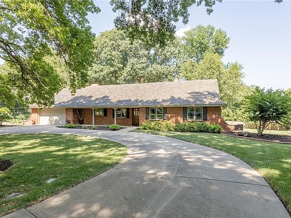 Welcome home to this gorgeous brick ranch located in a coveted Leawood Estates cut-de-sac. The circle driveway off the beautiful, tree lined street leads you to the charming front porch and entry, with a custom wood door and tiled floor in a lovely herringbone pattern. Classic features of the updated kitchen include Oak hardwood floors, white painted custom cabinets with crown molding, glass door display cabinets, pantry with pull out drawers, double ovens, granite counters, subway tile back splash, stainless steel and glass appliances. The living room has Oak hardwood floors and an understated gas fireplace with tile surround. Glass doors lead to the large patio and spacious park-like setting of the back yard, perfect for entertaining. Located between the living room and family room, the dining room has Oak hardwood floors and plantation shutters that provide a view to the treed back yard. The spacious family room features include Australian Cypress hardwood floors, painted wood beam ceiling, stacked stone fireplace with gas logs, custom built-in cabinets, wet bar with a vintage beverage refrigerator, ceiling fans and plantation shutters. The main floor bedrooms are generously sized with Oak hardwood floors and ceiling fans. The 4th bedroom with ensuite bathroom and walk-in closet is an attic dormer. The opportunities are endless to expand the additional attic space, which can be accessed thru the walk-in closet. Accessibility features include an updated Main Bathroom with a zero-entry shower and accessible approach with ramp from the garage to the main floor. Additional features of this gorgeous home include Marvin window replacements, zoned HVAC, Circle View doorbell and sprinkler system. Abundant storage and finish options exist in the full concrete basement with a partially finished rec room, half bath, storage shelves and workbench.