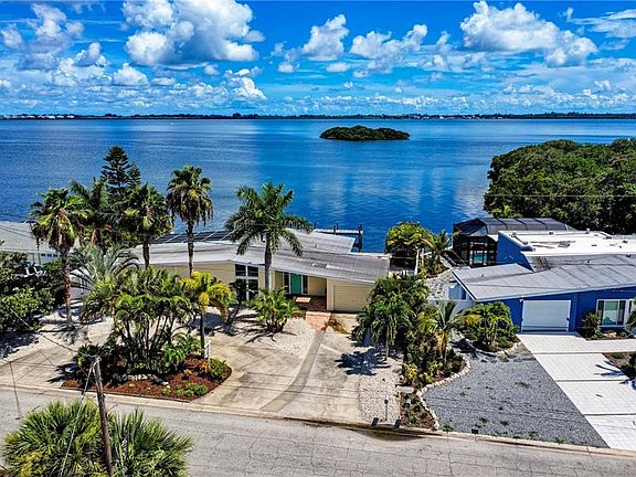 Who doesn't want to live in a home with a view? 9923 Spoonbill, located in Flamingo Cay, just 5 minutes from Anna Maria Island gives you JUST that! An amazing view of Palma Sola Bay, a dock with room for multiple boats and lots of other water toys, a new seawall within the last 10 years, private pool and spa, ground level and the list goes on and on. This home has 3 bedrooms, 2 full baths, one car garage and a semi open concept. The master en suite has a very large beautiful spa feel bathroom with sky light and large walk in closet and a wide slider to enables you beautiful morning sunrises and access direct to the pool for a morning swim. With a split design, the other two bedrooms are on the opposite side of the hime and share another large bathroom with shower/tub. The kitchen is spacious enough for more than one cook to prepare for the dinner parties and family get togethers with direct access to the dining room and the large open living room, both with high ceilings that really give it a spacious boost. Mature landscaping with a circular drive and a one car garage makes parking and coming and going a breeze. Flamingo Cay is the perfect spot for Single Family Home living or making this home a vacation rental to help cover the cost. Very private area and much less than the cost of Anna Maria Island. It's a unique home that doesn't come up on the market often. Come see us!