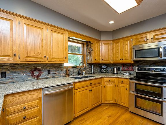 This meticulously maintained home has an unassuming amount of space for your family to live and play! The main floor features an updated kitchen with granite and stainless steel appliances, the master bedroom and en suite bathroom, 2 additional bedrooms and a full bath. The finished basement has a full bath with a large soaking tub, 2 large rooms that can be used as bedrooms, an office or a home gym- the options are unlimited! The inviting wood stove in the cozy downstairs living area can be used to heat the whole home in the winters. The outside living space is your own private oasis. Surrounded by almost 3 acres, you can mosey through the paths, soak in the hot tub, relax by the fire pit and soak in the views.
