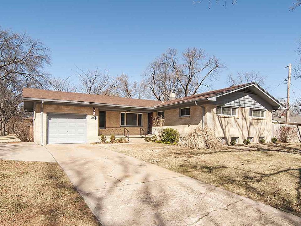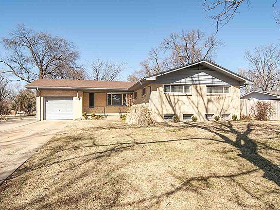 Delightful brick ranch home! Remodeled kitchen and baths! Original Hardwood Flooring in the living room, hallway, and three main level bedrooms! The kitchen has newer cabinets, counters, and back splash. There is a pantry and eating space in the kitchen. The living room has a full brick wall fireplace with decorative shelves and entrance to a deck as well as a patio. There are newer vinyl windows throughout the home to assist with everyday energy savings. The hall bath was recently remodeled and includes an ADA wide doorway, tiled flooring, vanity with solid surface counter top, linen storage, and custom shower with glass doors. The home has a finished basement with a roomy family room, a gas fireplace, finished office, storage, and laundry room. There is bonus concrete parking beside the garage.
