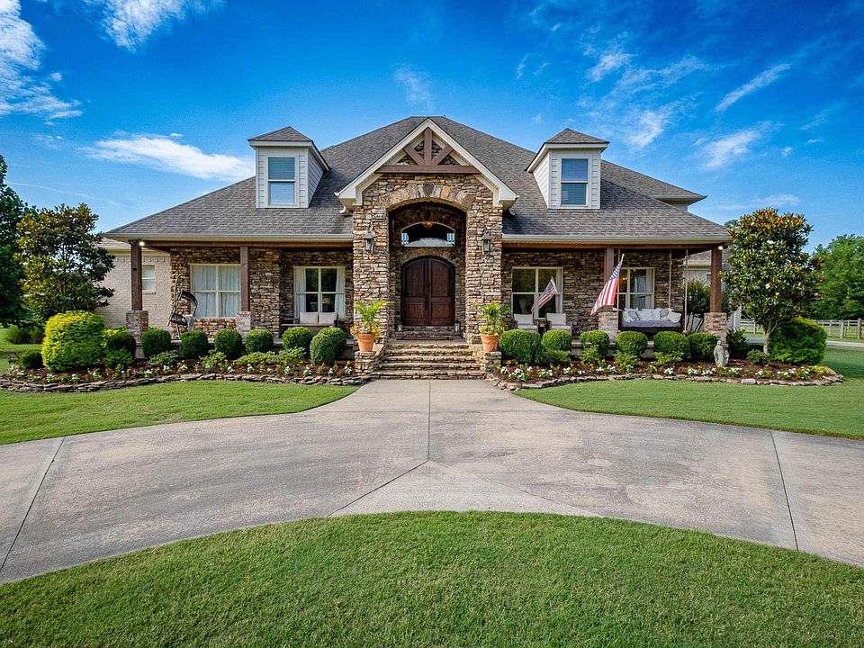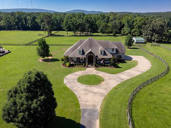 Stunning Western Pulaski County Country Estate on ten acres just across from the Rattlesnake Ridge Nature Area with amazing views of Pinnacle Mountain. This updated home boasts an open floor plan that is perfect for entertaining. Warm and inviting interiors with abundant living spaces offer something for every member of your family including a formal dining room and office. The gorgeous primary suite is on main level with a sitting area looking out over the beautiful property. The great room with fireplace opens to gourmet kitchen featuring a large island, wine refrigerator, double ovens, gas range and a lovely breakfast room. The formal dining room is perfect for any large family gathering. Upstairs offers a game room with fireplace, four large bedrooms, two full bathrooms and a landing that is perfect for a reading room or your favorite hobby. Outdoors enjoy two covered porches, level acreage, Nowlin Creek, 3 stall barn with tack room & two pastures designated by 4 rail wood fencing. Three car side load garage, generator, city water and buried propane tank. Flood insurance required. See Agent Remarks for more info!
