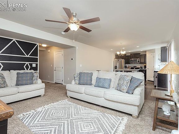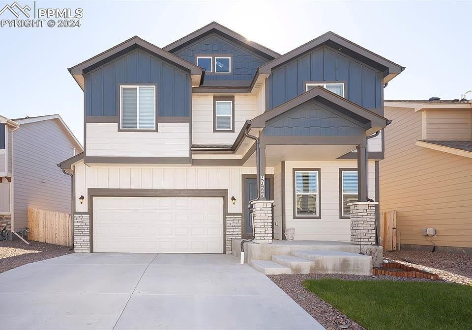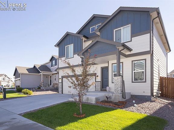 Like New and Move-in Ready this Beautiful 2-story home built in 2020 is located in the highly desirable Creekside at Lorson Ranch community and minutes walking distance from the neighborhood K-8 Grand Mountain school! This well-kept one-owner home has impeccable pride of ownership and amazing curb appeal! As you step into this home you'll notice a perfectly situated home office leading into a light and bright well-designed open concept floor plan, LVP flooring, recessed lighting, staggered cabinetry w/ crown molding, matching kitchen island, stainless steel appliances, AC, large pantry and plenty of counter space! Four large bedrooms upstairs including a Primary suite with vaulted ceilings complete with an adjoined bathroom, dual basin sinks, soaking tub and a huge walk-in closet! Three additional bedrooms on the upper level as well as a laundry room all on the same level! Large manicured front and backyard landscaping surrounded by a 6' cedar fenced backyard w/ extended concrete patio and custom pergola leaves nothing to be desired! Conveniently located close to shops, restaurants, Shriever AFB, Peterson AFB, and Fort Carson! Hurry this home will not last long!