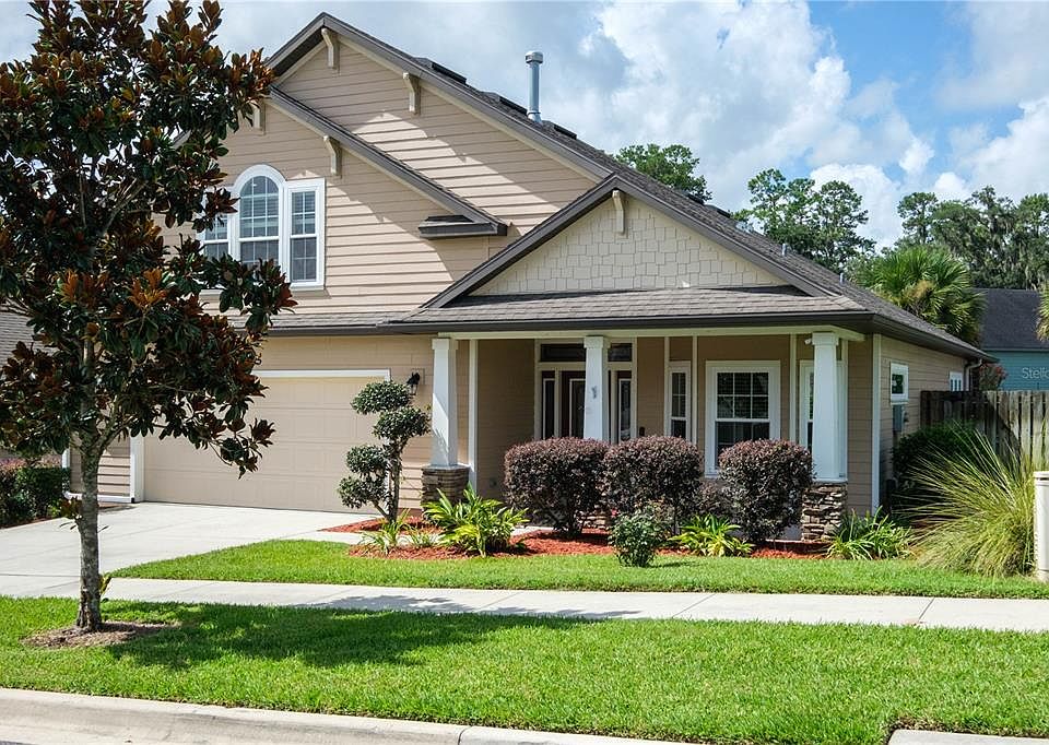 Beautiful 2015-built home sprawled on over 2500 sqft of heated/cooled space with 4 bedrooms & 3.5 baths in highly-desired west of I-75 neighborhood of Ellis Park! Great community zoned and walking distance to top-ranked schools (Hidden Oak, Fort Clark and Buchholz High)! This three way split home boasts of a very open floor plan with high tray ceilings & crown molding, gorgeous tiles throughout main areas and nice wooden floors in Owner's suite and upper floor, granite countertops, SS appliances, new keyless entry, 42" soft close cabinets, BRAND NEW gas range, built in wine cooler & rack, energy efficient windows with abundant natural light! A flex room by the foyer has bay windows and it offers versatility ( can be your second living area, formal dining or remote working space!) Owner''s suite is spacious with huge walk-in closet, separate tub, walk-in shower and split vanities. Two other guest rooms with shared bathroom are also on the main floor! Don't forget the 400+ sq ft bonus room with full bath and walk in closet space upstairs! This space can be a perfect in-law or guest suite or family media/entertainment room! Relax in the outdoor living and enjoy BBQ (gas pipe connected) or go for a quick splash in the community pool! Other features include laundry room with closet, many storage space, three years old high end washer and dryer, powder room, and a bigger than standard garage(3 feet extended) with smart opener! HOA fee 130$ monthly covers front yard lawn care, pool and play ground! Move in ready! Call for showings! House is for rent as well by owner.
