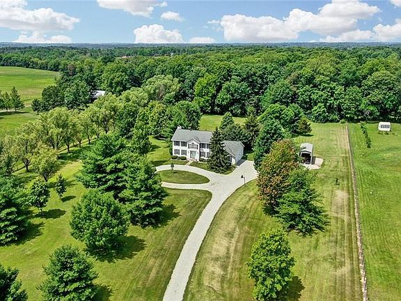 Country living at its finest! Beautiful home sitting on 6 acres (2 parcels), w/2 acres that are wooded (backing to preserve area) w/trails & a small cleared area great for overnight camping! Imagine sitting on your patio or in the gazebo listening to the fountain in the koi pond and experiencing the sounds of nature. This home features a 2-story foyer w/plant ledge, formal LR/DR. Spacious kitchen opens to breakfast nook & family room w/WBFP. Half bath & laundry room complete the 1st fl. All 3 bdrms are spacious w/tons of storage. Master bath includes soaker tub & separate shower. Bsmt features a finished 12x12 room & small concrete crawl space. There's a 2.5 car attached garage + 2.5 car detached garage, RV storage. Updates include WPC flooring (2019), Corian countertops (2019), well (2020), gas water heater (2020), water softener (2019), partial roof (2018). Truly a nature lover's paradise. Second parcel is #D14 00809 0032.