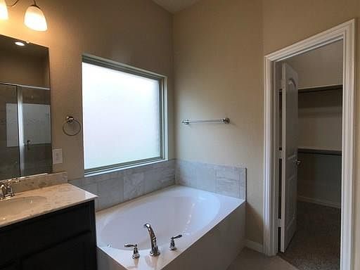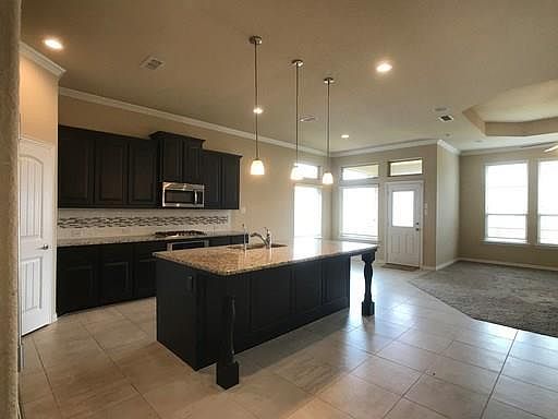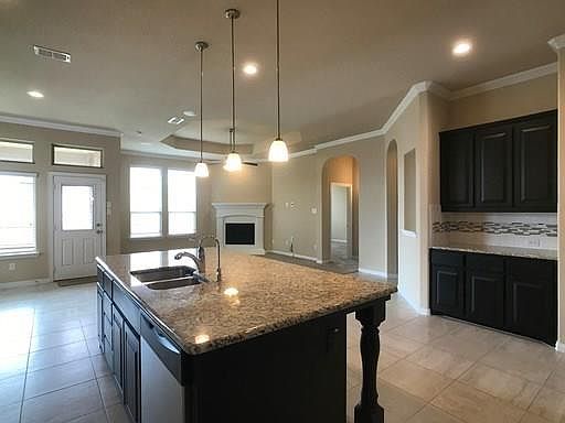Three bedroom two bath with study. Open living with a corner gas starter fireplace. Large kitchen with Island-breakfast bar, stainless steel appliances and walk-in pantry. Granite countertops in kitchen and bathrooms. Split master with dual vanities, garden tub, separate shower with a large walk-in closet. Equipped with smart home and water softener system. Pre-installed speakers in living room area and out door patio. Keller ISD.