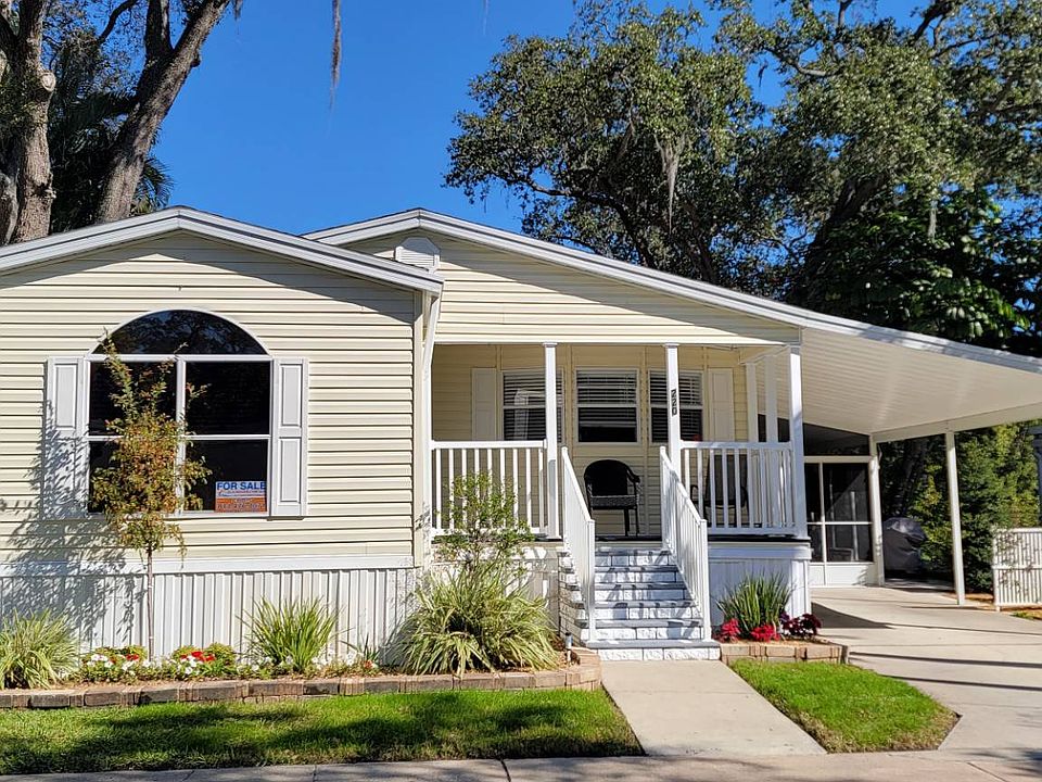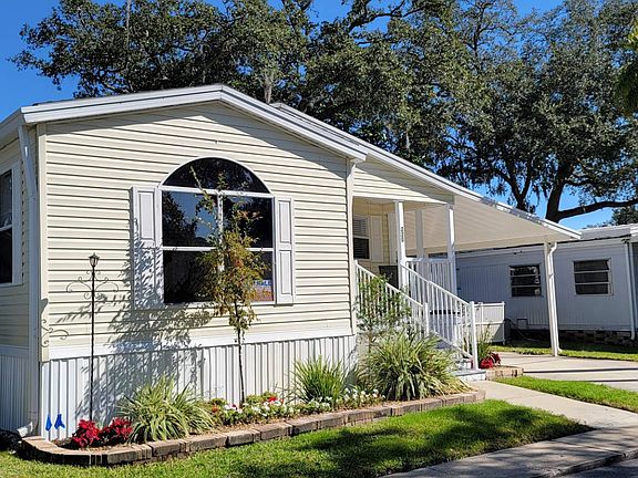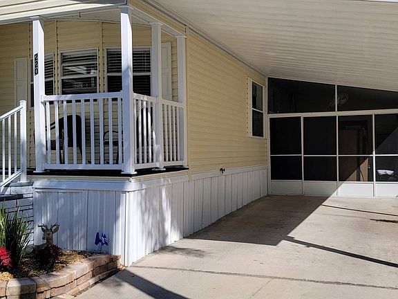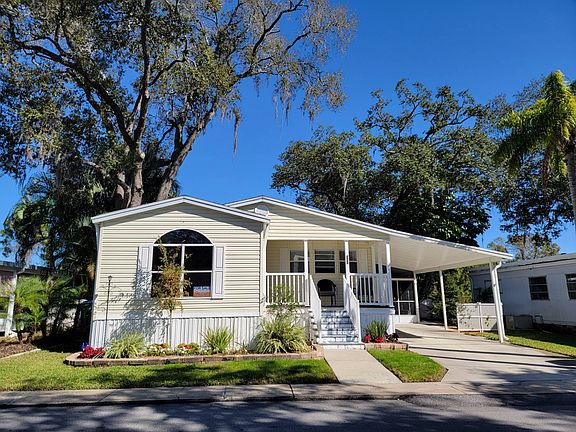 Your Oak Crest backyard is a lush blend of palm trees and tropical plants accented by stately oaks and pines. Oak Crest features a heated swimming pool, Jacuzzi, PETANQUE, driving and putting area, shuffleboard courts, and picnic area with a gas grill. A game room with billiards and library await you in your gorgeous clubhouse with Free WiFi Hot Spot in the Clubhouse/Community Office. If you enjoy an active lifestyle or relaxing on your deck and watching a breathtaking sunset, it is all yours at 55+ Oak Crest/Acorn. Simply minutes away from the world's most beautiful beaches. This community requires one person in the household to be 55 or over while allowing the second person to be 18 or older. Lot rent approximately $780 includes water, sewer, garbage, lawn maintenance and full use of the amenities. You will never guess you've stepped into a mobile home when you walk inside this LUXURY HOME! WELCOME TO THE BEST! This immaculate, spacious 2006 manufactured home located on a perimeter lot within walking distance to the amenities is sure to please! The high end quality is obviously demonstrated all throughout this home! All the walls are smooth finished with vaulted ceilings, upgraded molding, newer roof 2018, newer CH&A 2016,newer plank flooring, and granite counter tops. Soft neutral colored walls, elaborate, UNIQUE KITCHEN with newer matching black Samsung appliances to include, side by side refrigerator with bottom freezer, smooth top range/oven combo, above the stove microwave, Granite counter tops, cabinets galore and beautiful bay windows over the sink that over looks your front porch. Just off the kitchen is your Dining Room that will easily fit a table for four to six.. The LIVING ROOM is perfectly situated next to the kitchen/dining rooms making it the perfect house for entertaining, family and friends along with big beautiful windows and room for any furniture combination.. Next to the dining room is a utility area complete with your indoor laundry closet with shelving, washer and dryer connections and the entry/exit to your incredible screen lanai with custom storage shed. Down the hall you will find your guest bedroom with room for a king size bedroom suit and good sized closet . Across from the guest bedroom is your updated Main Bathroom with new fixtures, a nice vanity and tub/shower combo along with a linen storage cabinet.. Your guests will never want to leave! Settle in for the evening in your MASTER SUITE BUILT TO SUIT A KING AND QUEEN! The Spacious Master Suite features room for a king sized bedroom suit, wall to wall step in closet and everyone's favorite private en-suite bathroom. This perfectly sized en-Suite features a large walk in shower, amazing vanity with granite counter top, linen storage and tile top flooring. The outside of the home is just as impressive with a front facing covered porch, large screened lanai with concrete, sealed, decorative flooring on the side of the home, an over sized perimeter lot, large storage shed with custom shelving, carport with room for 2-3 car parking with an added custom golf cart pad and grill storage. This Show Stopper Will Not Last Long! Call Chris Today to make an offer or schedule your private tour!!! All listing information is deemed reliable but not guaranteed and should be independently verified through personal inspection by appropriate professionals. All Florida Mobile Home Sales Inc. cannot guarantee or warrant the accuracy of this information or condition of this property. The buyer assumes full responsibility for obtaining all current rates of lot rent, fees, and pass-on costs. Additionally, the buyer is responsible for obtaining all rules, regulations, pet policies, etc., associated with the community, park, or home from the community/park manager. All Florida Mobile Home Sales Inc is not responsible for quoting of said fees or policies