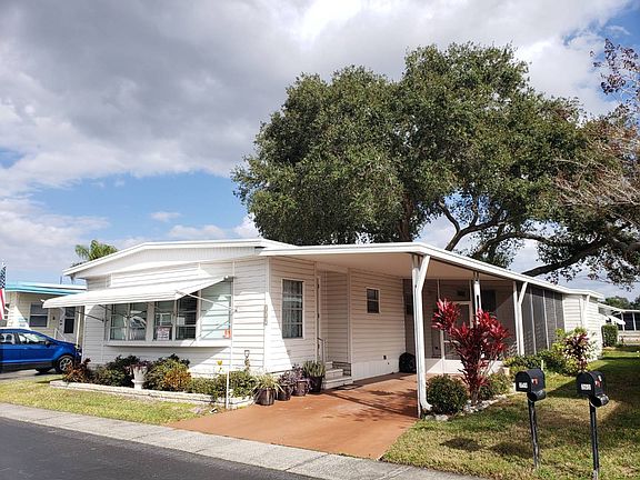 Your Oak Crest backyard is a lush blend of palm trees and tropical plants accented by stately oaks and pines. Oak Crest features a heated swimming pool, Jacuzzi, PETANQUE, driving and putting area, shuffleboard courts, and picnic area with a gas grill. A game room with billiards and library await you in your gorgeous clubhouse and Free WiFi Hot Spot in the Clubhouse/Community Office. If you enjoy an active lifestyle or relaxing on your deck and watching a breathtaking sunset, it is all yours at 55+ Oak Crest/Acorn. Simply minutes away from the world's most beautiful beaches. This Large Turnkey, 2 bedroom, 2 bath plus bonus room home featuring 2 year old roof over with lifetime transferable warranty, laminate and tile flooring, 5 year old a.c and fresh paint throughout. Enter in to the home from your covered carport in to your spacious Kitchen. The Updated Kitchen features laminate flooring, laminate counter tops, tile back splash,, stove/oven combo, refrigerator, dishwasher and a nice sized pantry. Next to the kitchen is the Dining Area complete with large Decorative China Hutch providing additional storage and a kitchen table with seating for four. Just off the kitchen/dining you will find your bright and spacious Living Room complete with two recliners, love seat, chair and t.v with stand. Down the hall you will find your Main Bathroom with tile flooring, beautiful new vanity with double sink and tub/shower combo. The beautifully decorated Guest Bedroom has laminate flooring, queen bed, dresser, autumn, t.v and a nice sized closet. All of your guests will love this room. The Master Suite is sure to please with a walk in closet, queen size bed, two night stands, dresser, t.v and ensuite bathroom. The Ensuite Bathroom features a walk in shower, The Bonus room is located in the front of the home with additional access from your covered carport and currently set up as a sitting area with two couches and an autumn. On the exterior of this home you will find a large covered carport with screen lanai and a storage shed with washer and dryer. This Updated Home Will Not Last Long! Call Chris Today to make an offer or schedule your private tour!!!!!! This community requires one person in the household to be 55 or over while allowing the second person to be 18 or older. ***All listing information is deemed reliable but not guaranteed and should be independently verified through personal inspection by appropriate professionals. All Florida Mobile Home Sales Inc. cannot guarantee or warrant the accuracy of this information or condition of this property. The buyer assumes full responsibility for obtaining all current rates of lot rent, fees, and pass-on costs. Additionally, the buyer is responsible for obtaining all rules, regulations, pet policies, etc., associated with the community, park, or home from the community/park manager. All Florida Mobile Home Sales Inc is not responsible for quoting of said fees or policies