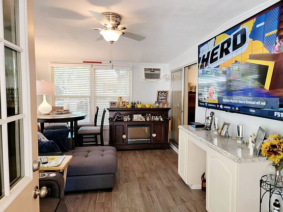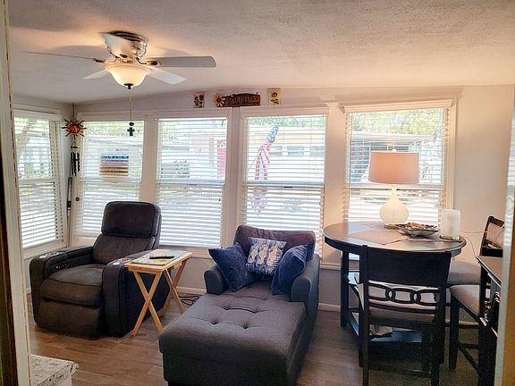 Your Oak Crest backyard is a lush blend of palm trees and tropical plants accented by stately oaks and pines. Oak Crest features a heated swimming pool, Jacuzzi, PETANQUE, driving and putting area, shuffleboard courts, and picnic area with a gas grill. A game room with billiards and library await you in your gorgeous clubhouse and Free WiFi Hot Spot in the Clubhouse/Community Office. If you enjoy an active lifestyle or relaxing on your deck and watching a breathtaking sunset, it is all yours at 55+ Oak Crest/Acorn. Simply minutes away from the world's most beautiful beaches. This 2 bedroom 2 bathroom plus bonus room home features plank and tile flooring, fresh paint throughout, indoor laundry, tinted windows to help with lower energy usage and room for 2-3 car parking. Enter into this lovely home from your covered carport into your Bonus Room or kitchen/dining area. The Kitchen features a white tile back splash, ample cabinets with new hardware, stove oven combo, double side refrigerator with ice maker and water, above the stove microwave, dish washer, pantry and a unique pass through window to your living room. Next to the kitchen is your Dining Room with room for a table that seats 6 and a laundry closet with washer, dryer and additional shelving for storage. The Living Room is spacious, has an electric fireplace, mounted T.V. and room for any furniture combination. Down the Hall you will find an additional closet for storage and the main bathroom. The Updated Main Bathroom features tile flooring, a newer vanity, newer toilet and tub shower combo. Just across the Hall is the Guest Bedroom with room for a full sized bedroom suit and good size closet. Next up is the Primary Suite with room for a king sized bedroom suit, ample closet space and everyone's favorite private en suite bathroom with separate vanity and tiled walk in shower. The exterior is just as impressive with newly tinted windows, a huge storage shed, composite steps, new front landscaping and room for a private covered sitting area. Some furnishings will stay and some are negotiable. This Updated Home Will Not Last Long! Call Chris Today to make an offer or schedule your private tour!!!!!! This community requires one person in the household to be 55 or over while allowing the second person to be 18 or older. Lot rent approximately $780 includes water, sewer, garbage, taxes, lawn maintenance, and full use of the resort amenities *All listing information is deemed reliable but not guaranteed and should be independently verified through personal inspection by appropriate professionals. All Florida Mobile Home Sales Inc. cannot guarantee or warrant the accuracy of this information or condition of this property. The buyer assumes full responsibility for obtaining all current rates of lot rent, fees, and pass-on costs. Additionally, the buyer is responsible for obtaining all rules, regulations, pet policies, etc., associated with the community, park, or home from the community/park manager. All Florida Mobile Home Sales Inc is not responsible for quoting of said fees or policies.