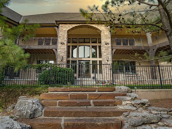 Exquisite luxury mountain lodge home on 1.27 acres. Breathtaking views of 3 acre private park. Features wraparound deck, floor to ceiling windows, 4 fireplaces, & walkout basement. Open floor plan with amazing master suite, 2 living spaces, game room, and office. Dance room could be media room. Approx. 1000' floored attic. Energy efficient. All rooms pre-wired for surround sound & security system. Basement stays at 50-70 degrees year round. Storm room rated FEMA standards. 1/4 swan oak flooring.