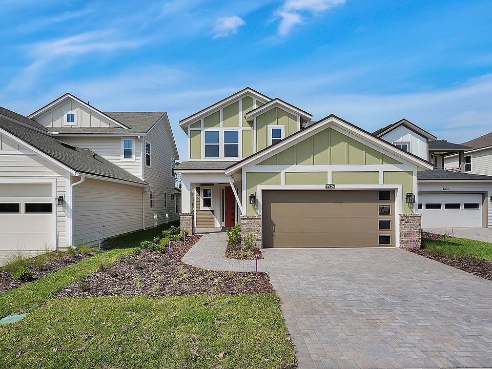 The Fanning Quick Move-In Home is a spacious 2,298 Sq. Ft. 4 bedroom, 3 bath home that features a Family Room, Dining Room, extended Kitchen/Café', Private Family Loft, oversized 2-Car Garage, and a Covered Patio. The Gourmet Kitchen features an extended cafe space. Certified US Department of Energy (DOE) Zero Energy Ready Homes? label. Images are of a similar completed home. Options and Colors may vary.