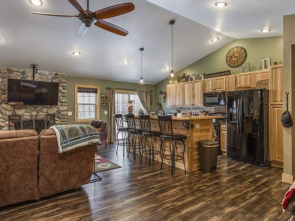 Newly finished, Lakes of the North house offering main-floor living. Open floor plan with vaulted ceilings and hickory cabinets and granite countertops, highlighted with finishes conveying northern-cottage charm. Drive-through, 2.5-car, insulated garage. All-new interior finishes, electrical, HVAC, flooring, and plumbing. Whether a second-home getaway or a year-round castle, this offers all of the comforts with access to Lakes of the North amenities which include beach, boating, horse and hiking trails, golf course, landing strip, snowmobiling trails, workout facility, clubhouse, pool, and more.