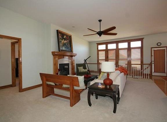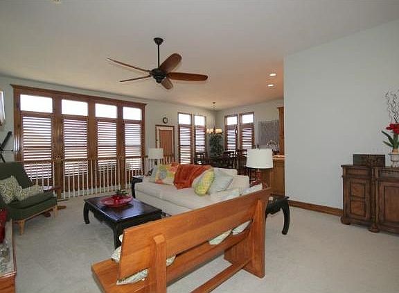 Perfect Patio/Villa in Barrington Ridge! Open & Airy Entry Leads you to Large Living Room that Boasts Fireplace & Natural Light! Kitchen/Dining has Hardwood Floors, Pantry w/Pull Out Drawers & Ample Cabinet/Counter Space w/Breakfast Bar! Master Suite has 15 Ft Vaulted Ceilings, Walk In Closet & Private Bath w/Travertine Tile, Double Sink Vanity, Jacuzzi Tub & Shower! Plantation Wood Shutters Throughout & Custom Drapery in Master! Partially Finished Basement w/Room to Finish More! Unfinished Side Stubbed for Bath!