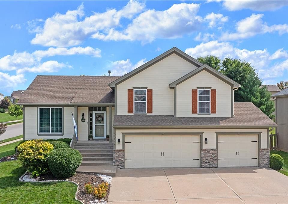 Welcome to the newest listing in Benson Place Parkfield, located in Kansas City, MO, within the Liberty School District. This beautiful, meticulously cared-for home is better than new! The amazing backyard features a large patio, beautiful landscaping, and a newer expanded deck. The amazing kitchen includes newer granite countertops, stainless steel appliances, and the kitchen refrigerator stays with the home. The huge kitchen peninsula provides plenty of room for stools or food prep. The versatile front room can serve as a formal dining room, sitting room, or office. The walk-out family room, filled with natural light, includes a fireplace and a convenient half bath on the garage level. The finished sub-basement boasts a wet bar and could be a non-conforming 4th bedroom. All bedrooms are generously sized, and the laundry room is located on the bedroom level. The spacious 3-car garage offers ample storage for all your needs. The newer exterior and interior paint gives this home a charming beachy feel! ~ Staying with home is Kitchen Refrigerator, Kitchen Bar Stools, Washer/Dryer, Theatre Seating & 42"LED TV in sub-basement!
