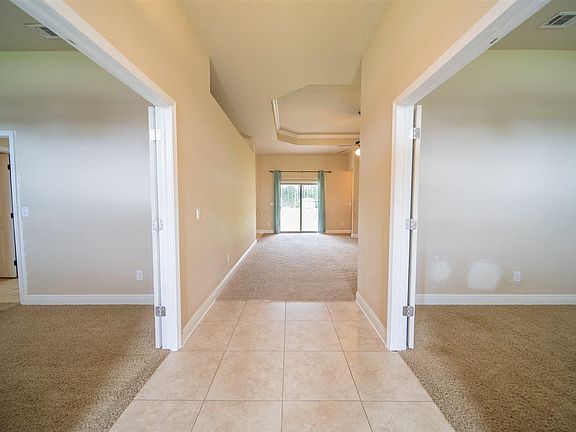 Beautiful newer home on an ACRE lot! This gorgeous house offers 4 bedrooms, 3 full bathrooms, plus separate formal living and dining rooms that can be used for home offices or play areas for the kids. The acre property not only has a metal workshop in the back, but the home has a 3 car garage so storage will never be an issue. The interior is a split floorplan with the bedrooms in separate wings - the master off the kitchen, two guest bedrooms and a bathroom in one corner off the living room, and a 3rd guest bedroom and bathroom in another. The luxurious master suite features a raised inset ceiling and its own sliding doors that lead to the back porch. The ensuite bathroom has double vanities, a soaking tub with separate shower, and his and hers walk-in closets. The beautiful kitchen is a chef's dream with rustic maple cabinetry, granite counters, a large island, corner pantry, and stainless steel appliances including a built in microwave and radiant range/double oven. Other great features of this property are the 30-year architectural shingle roof and fabric hurricane shutters!