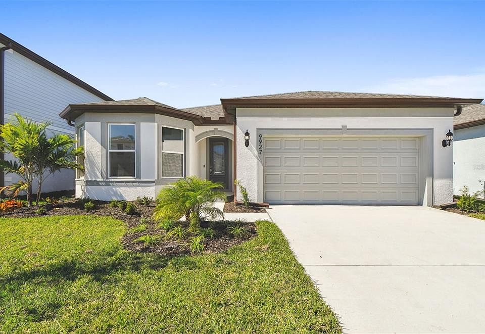 One or more photo(s) has been virtually staged. Move-In Ready Home Available NOW! Enjoy all the benefits of a new construction home in the highly amenitized, master-planned community of North River Ranch. Ideally located in Parrish near I-75 and I-275, enjoy easy access to Tampa, St. Pete, and Sarasota. Plus, this master-planned community features endless amenities, including the Brightwood Pavilion clubhouse, resort-style pool, fitness center, game room, playground, Avid Fit stations, trails, and so much more. Featuring the popular Mystique floor plan with an open-concept home design, this home has all the upgraded finishes you've been looking for. The designer, gourmet kitchen showcases a center island with a large single bowl sink and upgraded faucet, stylish gray cabinets, 3cm quartz countertops with a 3"x12" tiled backsplash, a spacious pantry, and Whirlpool stainless steel appliances including a built-in oven and microwave, dishwasher, and gas stovetop with wood canopy hood. The bathrooms have matching cabinets and countertops, upgraded sinks, and a super walk-in shower and dual sinks in the Owner's bath. There is 6”x24” wood-look floor tile in main living areas and stain-resistant carpet in the bedrooms. This home makes great use of space with an extended gathering room, versatile enclosed flex room, a convenient laundry room with a utility sink, the optional 3rd bedroom upgrade, and a 2-car garage. Additional upgrades and features include a glass insert in the front door, 8’ interior doors, LED downlights and a floor outlet in the gathering room, and a Smart Home technology package with a video doorbell. Call or visit today and ask about our limited-time incentives and special financing offers!