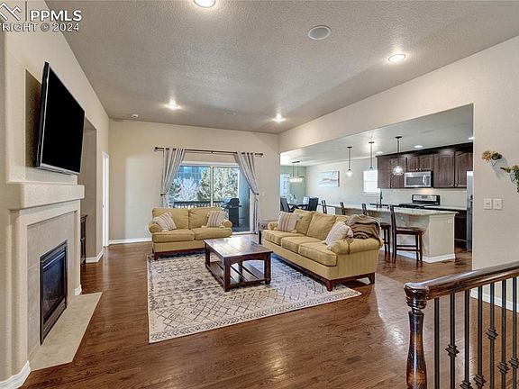 You're not going to want to miss this fantastic 4BR/3BA stucco and stone rancher in Cordera! The main level boasts an open concept floor plan featuring the Living Room with niches, a gas fireplace, and a walk-out to the fabulous covered deck; a dual aspect Dining Area, allowing for plenty of natural light; and the spectacular Kitchen with stainless steel appliances, a pantry, and an island with counter bar seating. This level also includes the spacious Master Bedroom with a 5-piece en suite Bath and walk-in closet; the second Bedroom; an Office/Flex Space; a full Bath; and the Laundry Area. The basement hosts an oversized Family Room that is perfect for relaxing and entertaining--you'll be glad to hear that the projector and screen system are included; two additional large Bedrooms; a 3/4 Bath; and an extended Storage Room! Additional highlights of this property include Academy School District 20; Access to the Cordera Community Center with clubhouse, fitness center, and pool; Close to dining, shopping, schools, and parks; Convenient accessibility to the Powers Blvd/Briargate PKWY/and I-25 corridors; a 5-Room Distributed Audio System (Family Room/Kitchen/Office/Master Bath/Covered Deck); Whole House Central Vacuum; New Furnace 2024; New Roof 2023; Water Heater 2022; Whole House Humidifier; Soffit System for lighting; Deck Gas Line for Grill. Take a look at the virtual tour link and schedule a showing today to see everything this amazing home has to offer!