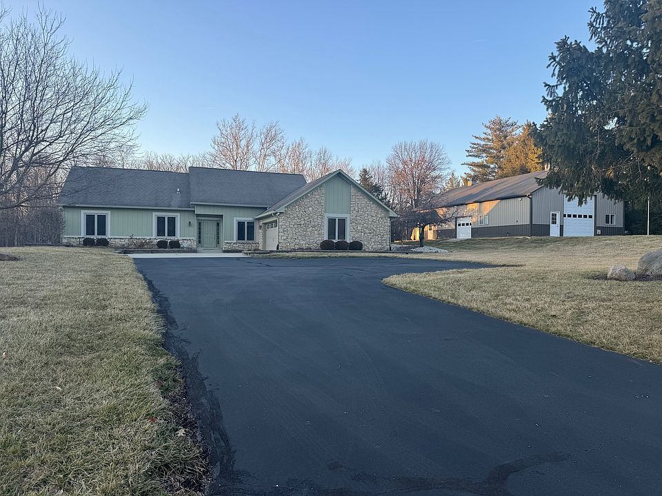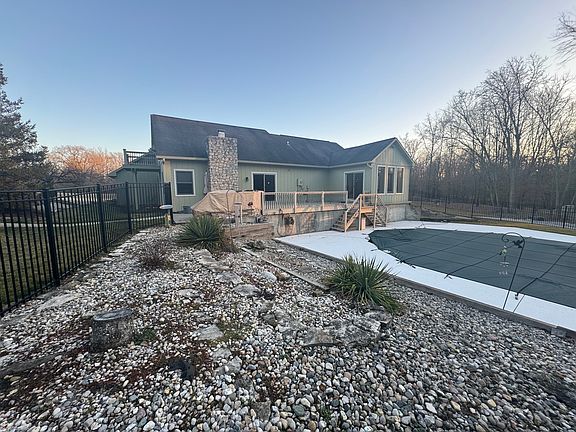 Indulge in refined country living with this exceptional property boasting a custom home on 2.5 acres. The main residence, featuring a master suite, seamlessly integrates with an outdoor haven - an inground pool 25x50 10.5' deep, fire pit, and outdoor kitchen. Two meticulously crafted pole barns offer versatility, with the first built in 2012, air-conditioned in 2019, and boasting polished floors, spray foam insulation, a full bath, well water, and fiberglass-covered OSB walls. The second barn, constructed in 2017, adds further utility. This home is a testament to meticulous care and thoughtful upgrades, evident in the Anderson windows and sliding door installed in 2014, a new driveway in 2013, and a freshly painted exterior with new gutters in 2021. The residence received a modern touch with an updated HVAC system in 2019, along with engineered hardwood floors. Additional highlights include a new garage door and opener in 2018, a new water softener in 2015, a new water heater in 2023, and a rejuvenated pool area with a new pump and liner in 2022. Immerse yourself in luxury and practicality in this one-of-a-kind property.