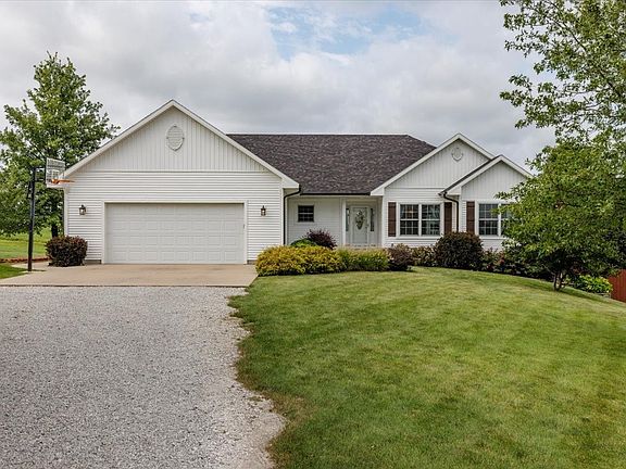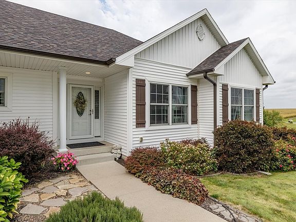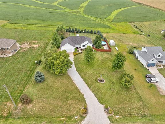 The country views can't be beat. One acre plus backs to 2 mile view of rolling farm hills to the North horizon. 3 bedrooms, 3 bath-tiled walk in shower in Master, jetted tub in main hall bath, and glass walk in shower in basement. Custom plentiful cabinets, pantry, island, kitchen sink sunset views, hardwood, tile, fireplace, double doors lead into master ensuite with walk in closet. Finished walkout to pool.