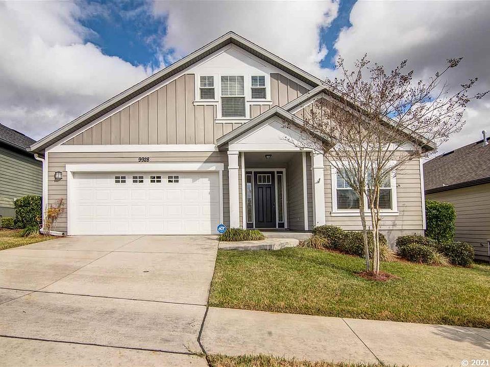 This well maintained Robinshore home is like new with 2766/SF, 4 bedrooms/4 bathrooms & bonus room, located in Ellis Park. The decorative front door welcomes you to the beautiful finished interior featuring hand-scraped hardwood floors in main living area, crown molding and extended baseboards. The kitchen showcases 42' hardwood cabinets, decorative tile backsplash, under cabinet lighting, quartz countertops & an oversized island which open to great room with architectural details on ceiling. Primary bedroom has en suite bathroom with walk-in shower and garden tub, all bathrooms feature granite counters. The upstairs bonus room includes full bath and storage room. Tall French Doors open to a screened porch that overlooks the hardscape low maintenance backyard. Energy efficient construction, low utility bills every month. Enjoy the pool, playground, & common areas this community has to offer. Zoned for excellent schools, walking/biking distance to Hidden Oak Elementary & Ft. Clarke Middle School. Close proximity to shopping, dining, and convenient traffic routes to UF, Santa Fe College, Shands/UF Health & NFRMC.