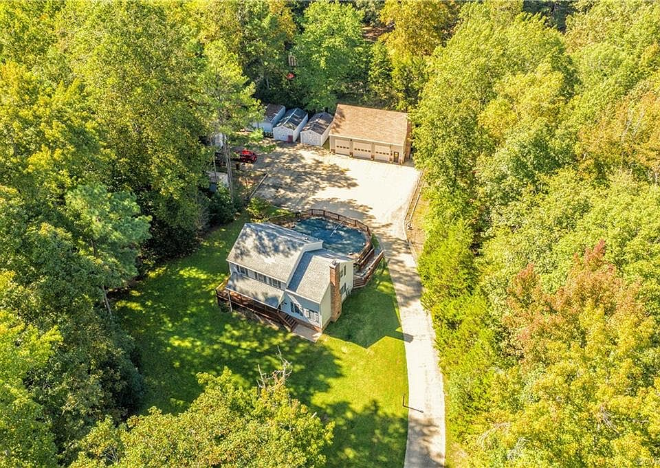 This home sits on 2.27 acres with huge garages. The main garage is heated and cooled with bathroom and cold and hot water and office upstairs. There are several additional storage sheds and enclosed carport. The concrete driveway goes all the way to the house with a huge parking area. Streetlights along the way. The house is a 2 story with hardwood downstairs. The kitchen has been renovated with lots of cabinets and multiple pantries. First floor offers a great room, family room, and mud room and full bath. Upstairs is a full bathroom, 4 bedrooms, and laundry room. Lots of privacy!!
